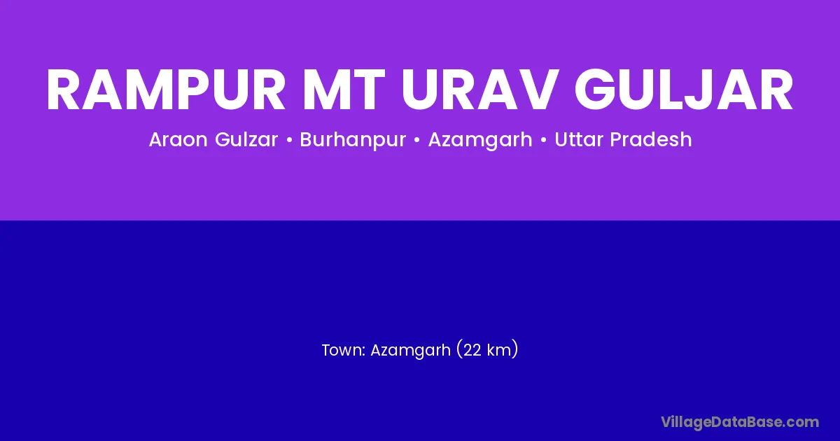 Azamgarh (22 km) is the nearest town to Rampur Mt Urav Guljar village for major economic activities and is located approximately 22 km away.
