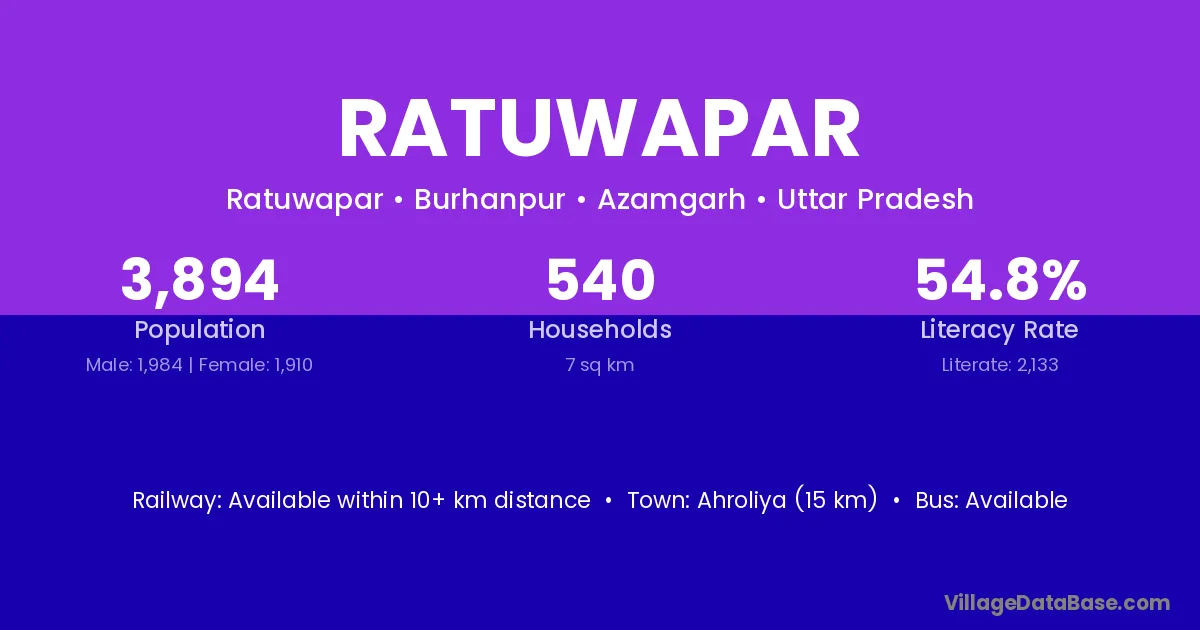 Ratuwapar village has a total population of 3,894 people, of which 1,984 are males and 1,910 are females.