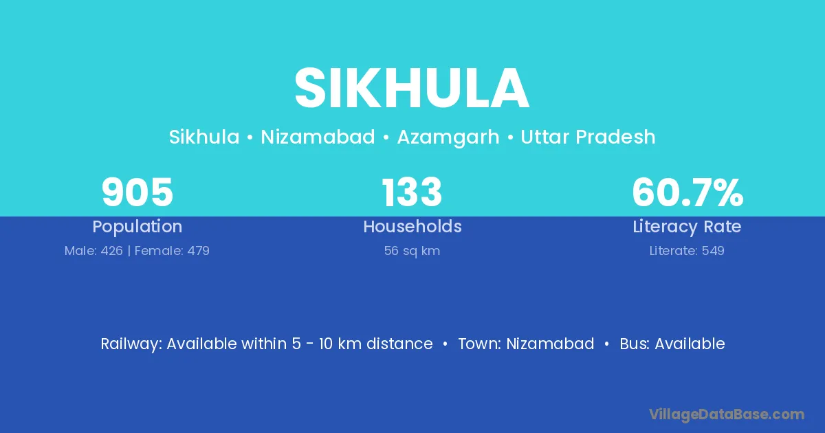 Azamgarh (12 km) is the nearest town to Sikhula village for major economic activities and is located approximately 12 km away.