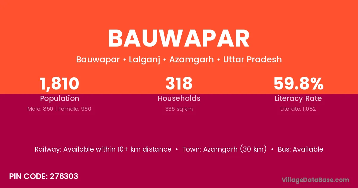 Azamgarh (30 km) is the nearest town to Bauwapar village for major economic activities and is located approximately 30 km away.