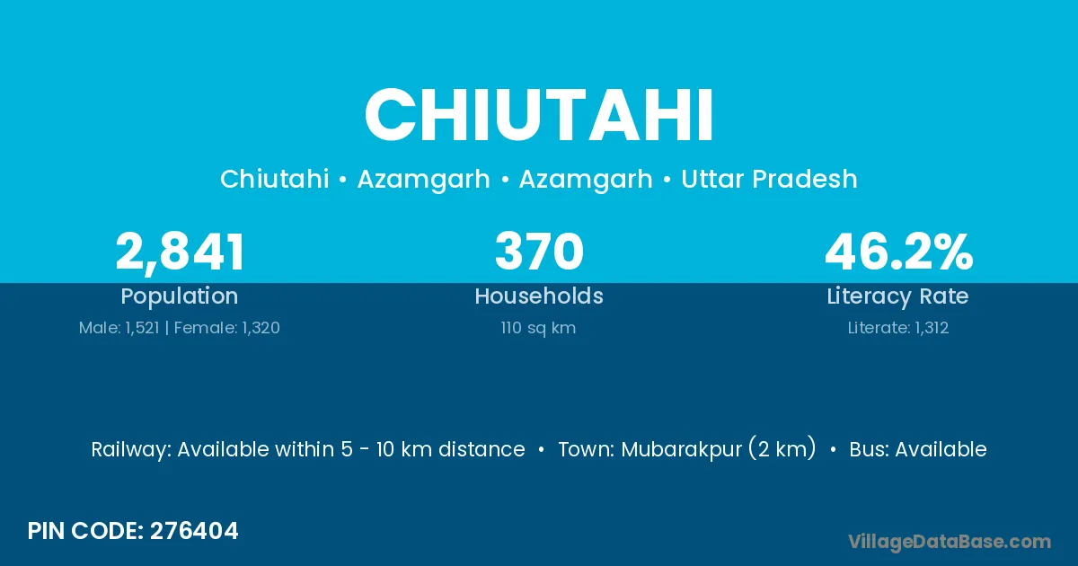 Azamgarh (40 km) is the nearest town to Chiutahi village for major economic activities and is located approximately 40 km away.