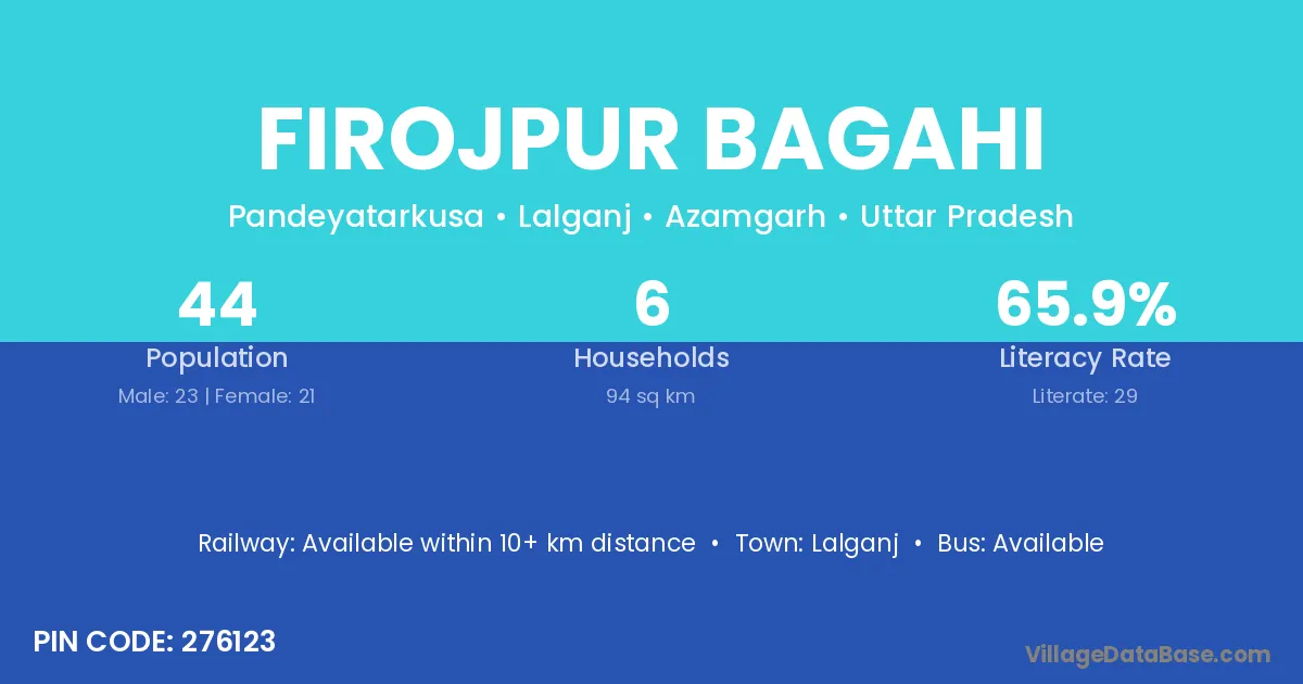 Firojpur Bagahi village has a total population of 44 people, of which 23 are males and 21 are females.