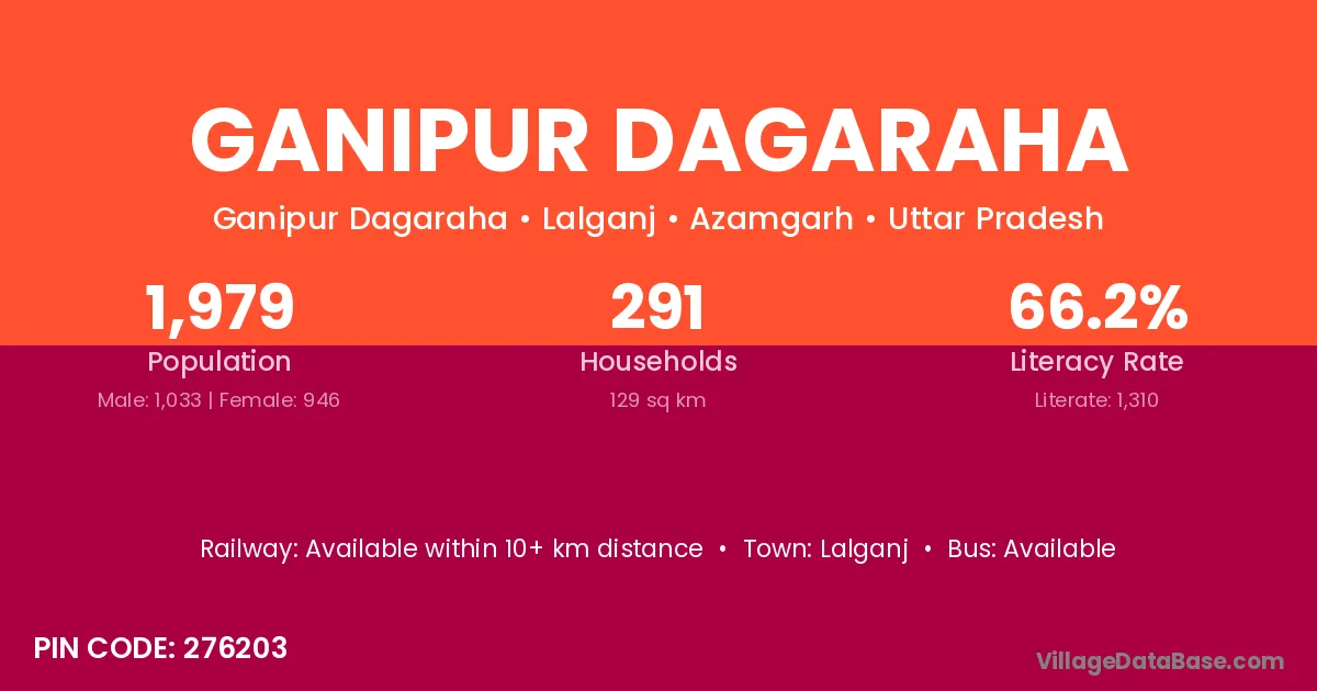 Ganipur Dagaraha village has a total population of 1,979 people, of which 1,033 are males and 946 are females.