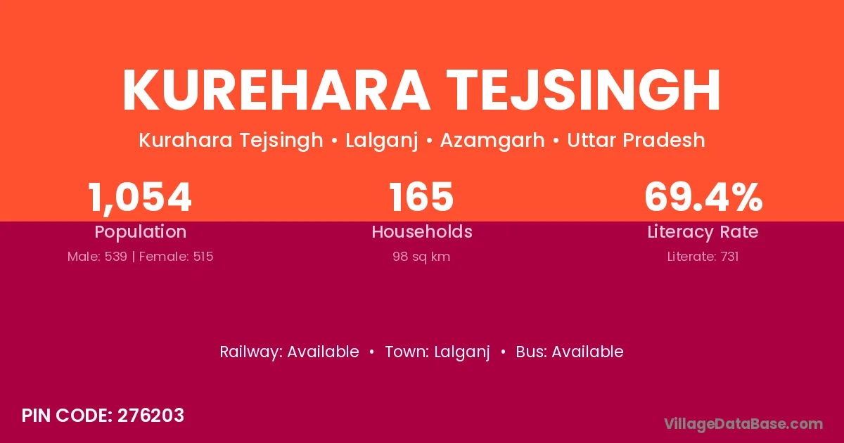 Kurehara Tejsingh village has a total population of 1,054 people, of which 539 are males and 515 are females.