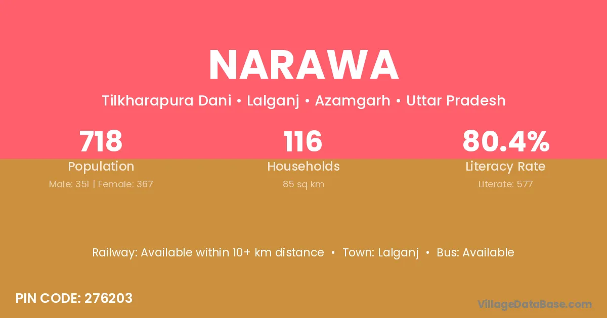 Narawa village has a total population of 718 people, of which 351 are males and 367 are females.
