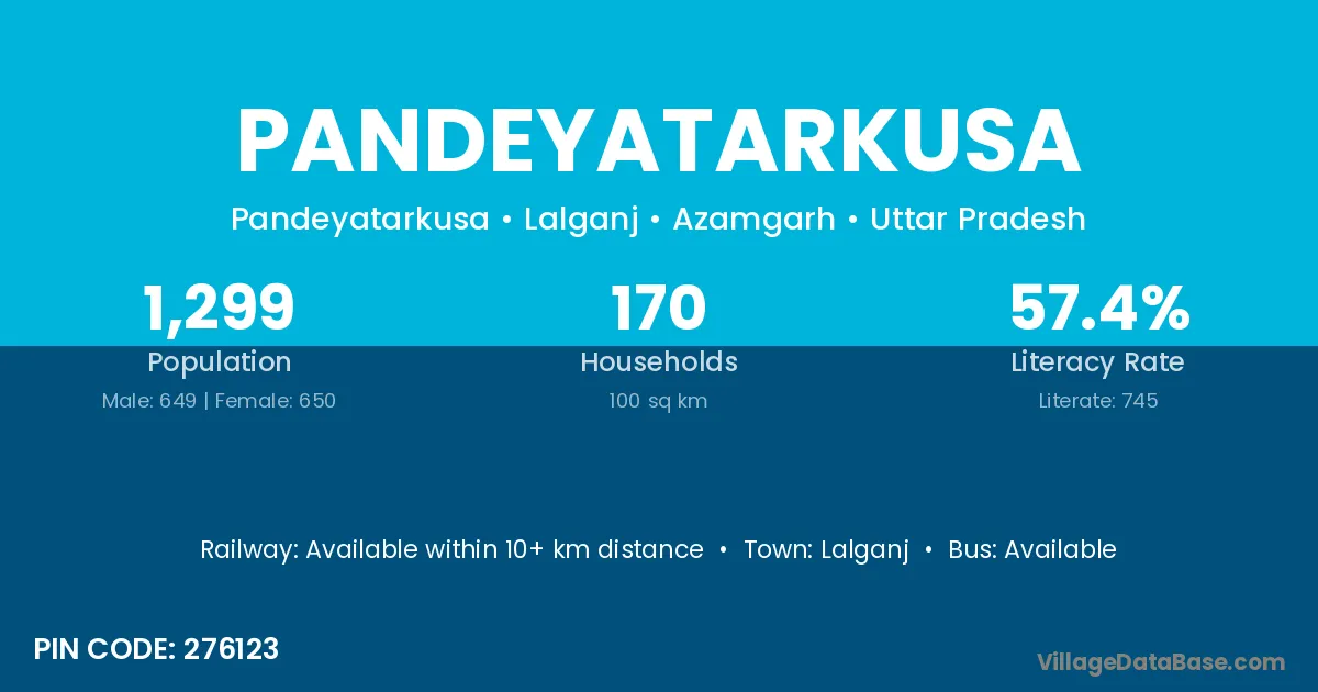 Pandeyatarkusa village has a total population of 1,299 people, of which 649 are males and 650 are females.