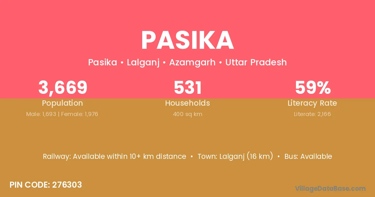 Lalganj (16 km) is the nearest town to Pasika village for major economic activities and is located approximately 16 km away.