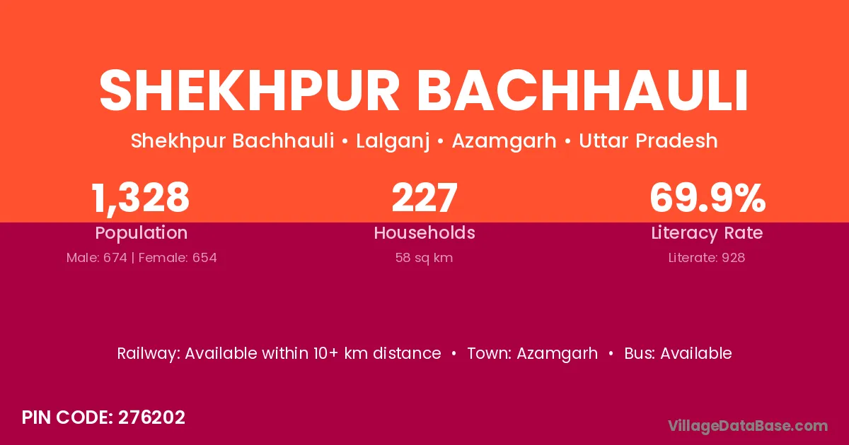 Shekhpur Bachhauli village has a total population of 1,328 people, of which 674 are males and 654 are females.