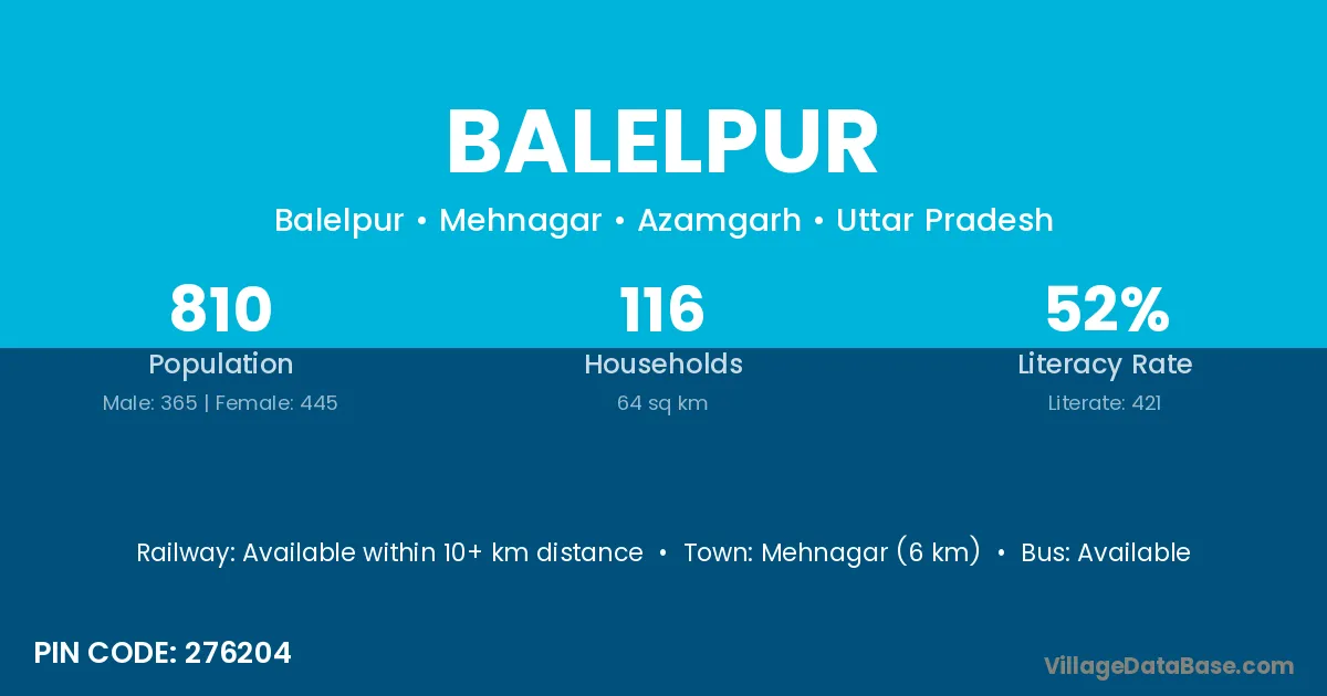 Mehnagar (6 km) is the nearest town to Balelpur village for major economic activities and is located approximately 6 km away.
