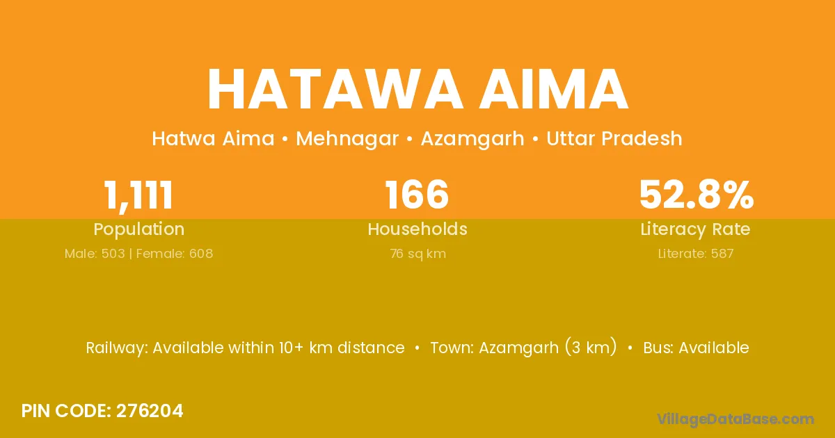 Azamgarh (3 km) is the nearest town to Hatawa Aima village for major economic activities and is located approximately 3 km away.