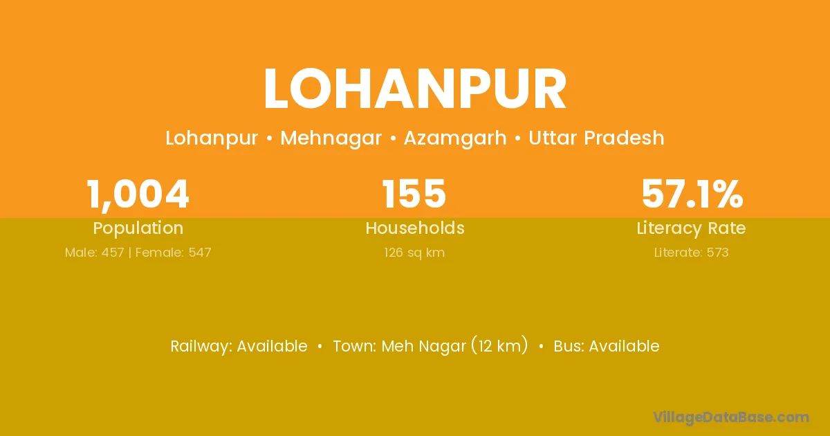 Meh Nagar (12 km) is the nearest town to Lohanpur village for major economic activities and is located approximately 12 km away.