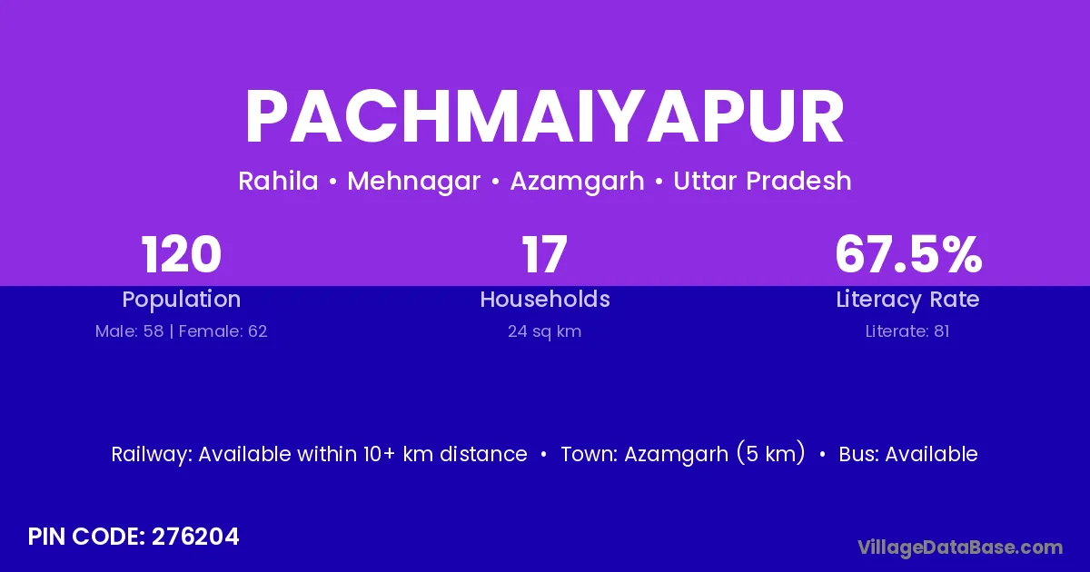 Azamgarh (5 km) is the nearest town to Pachmaiyapur village for major economic activities and is located approximately 5 km away.