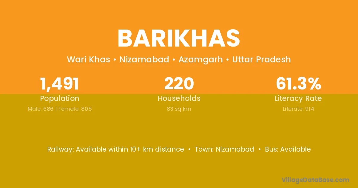 Nizamabad is the nearest town to Barikhas village for major economic activities