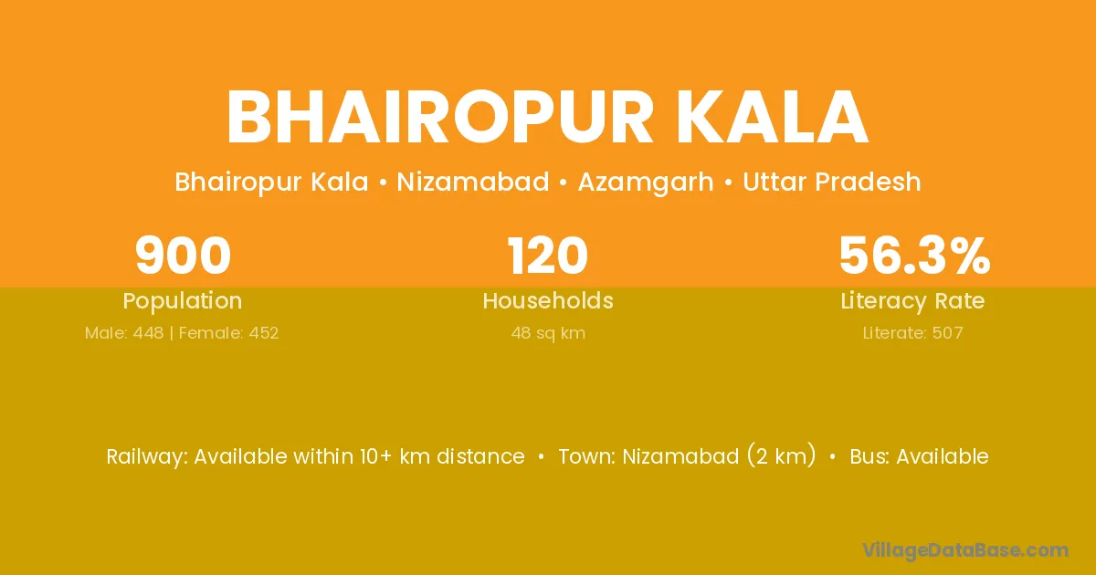 Nizamabad (2 km) is the nearest town to Bhairopur Kala village for major economic activities and is located approximately 2 km away.