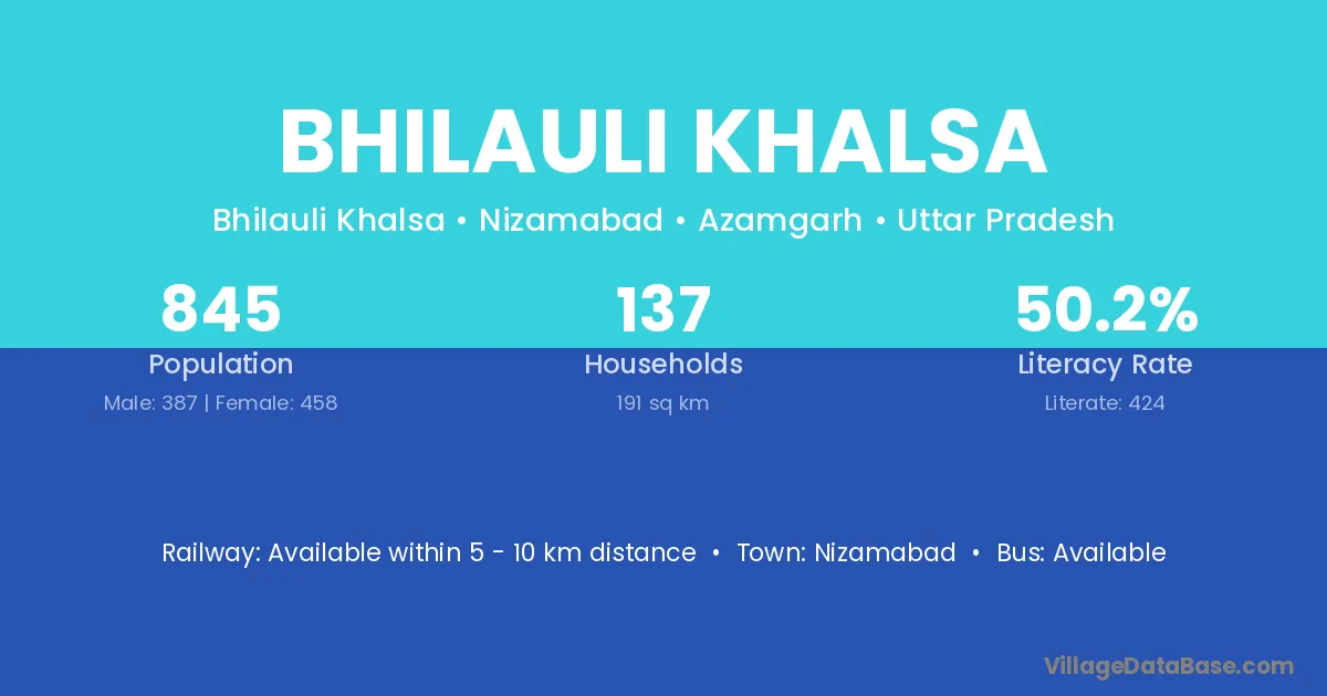 The literacy rate of Bhilauli Khalsa village is 50.18%. Male literacy stands at 56.33% and female literacy at 44.98%.