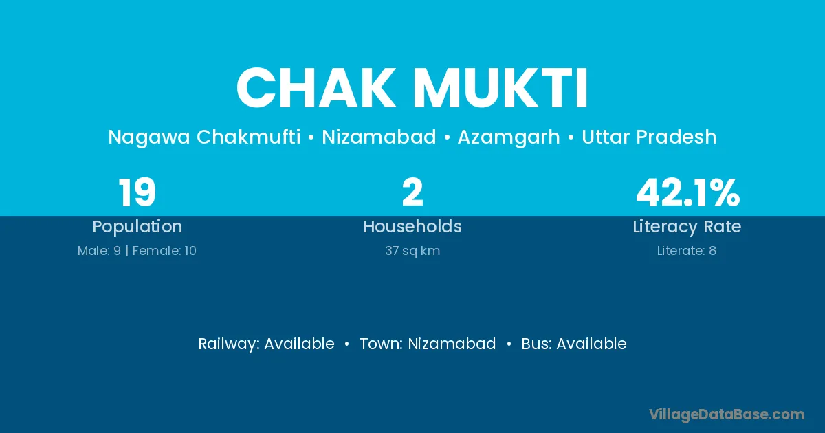 Chak Mukti village has a total population of 19 people, of which 9 are males and 10 are females.