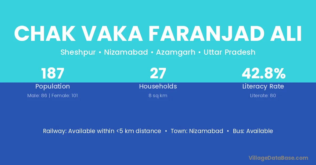 Chak Vaka Faranjad Ali village has a total population of 187 people, of which 86 are males and 101 are females.