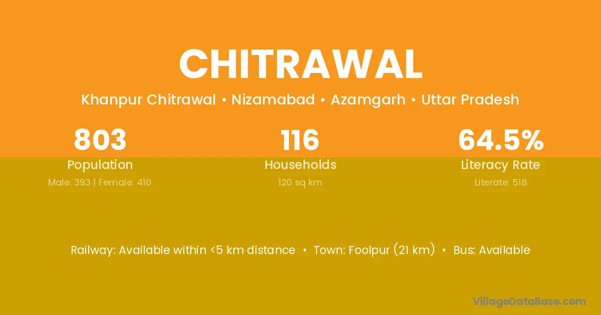 Chitrawal village has a total population of 803 people, of which 393 are males and 410 are females.
