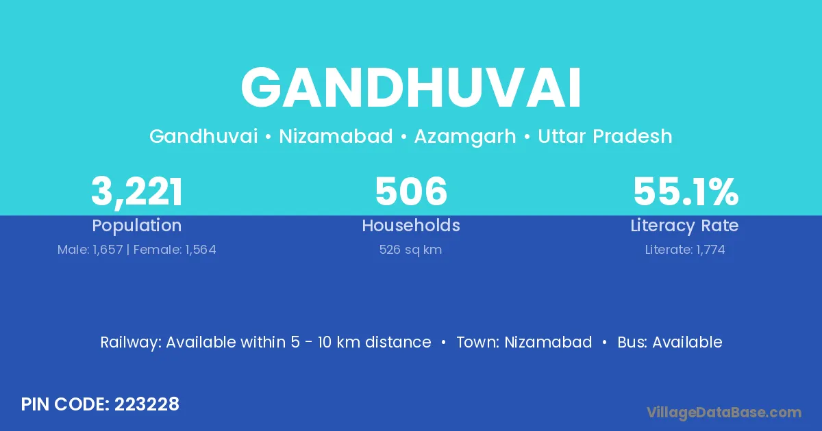 Gandhuvai village has a total population of 3,221 people, of which 1,657 are males and 1,564 are females.