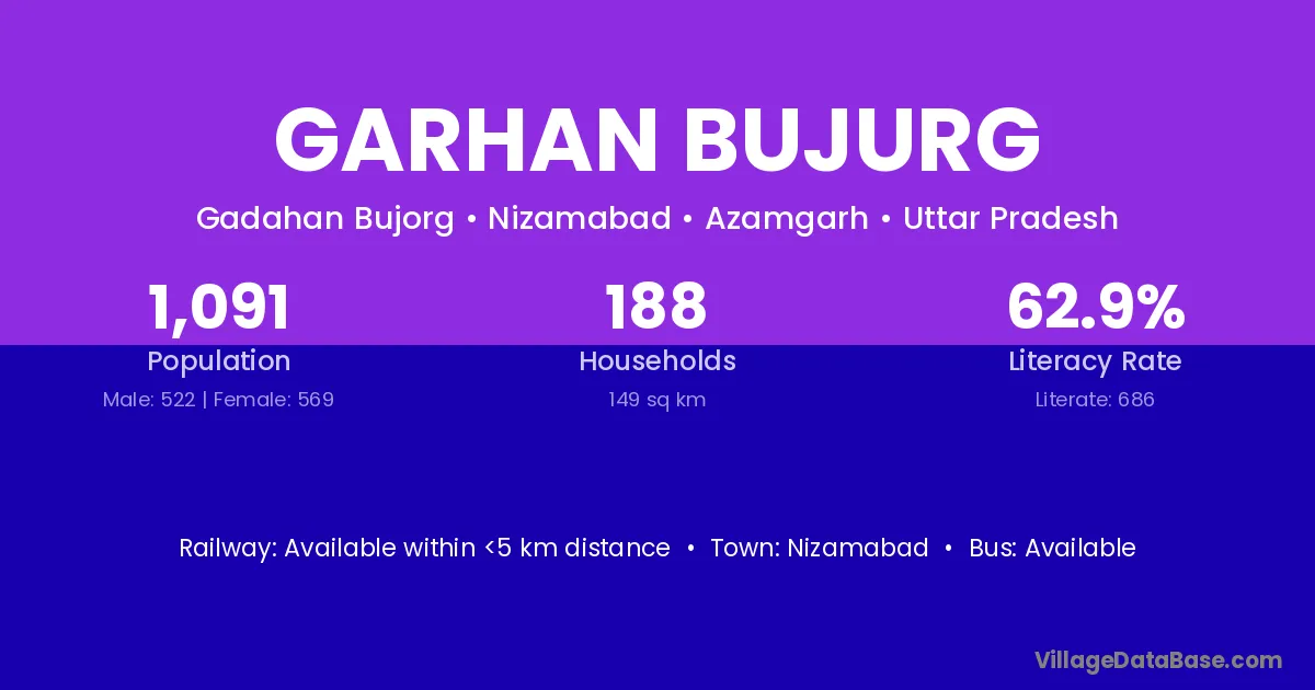 Nizamabad is the nearest town to Garhan Bujurg village for major economic activities