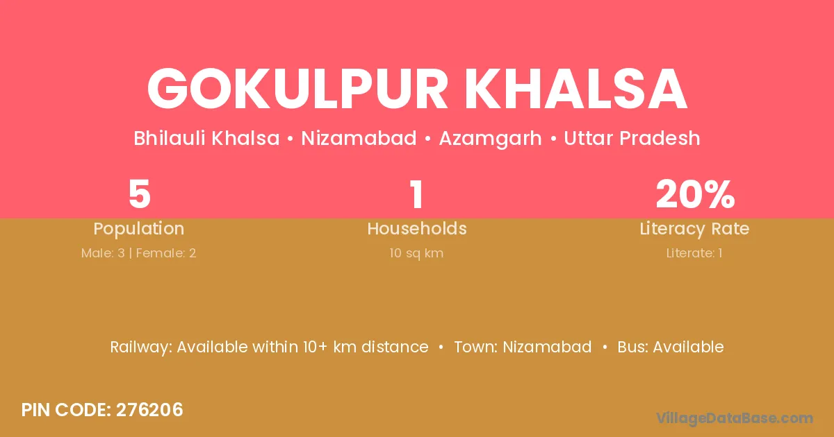 Gokulpur Khalsa village has a total population of 5 people, of which 3 are males and 2 are females.