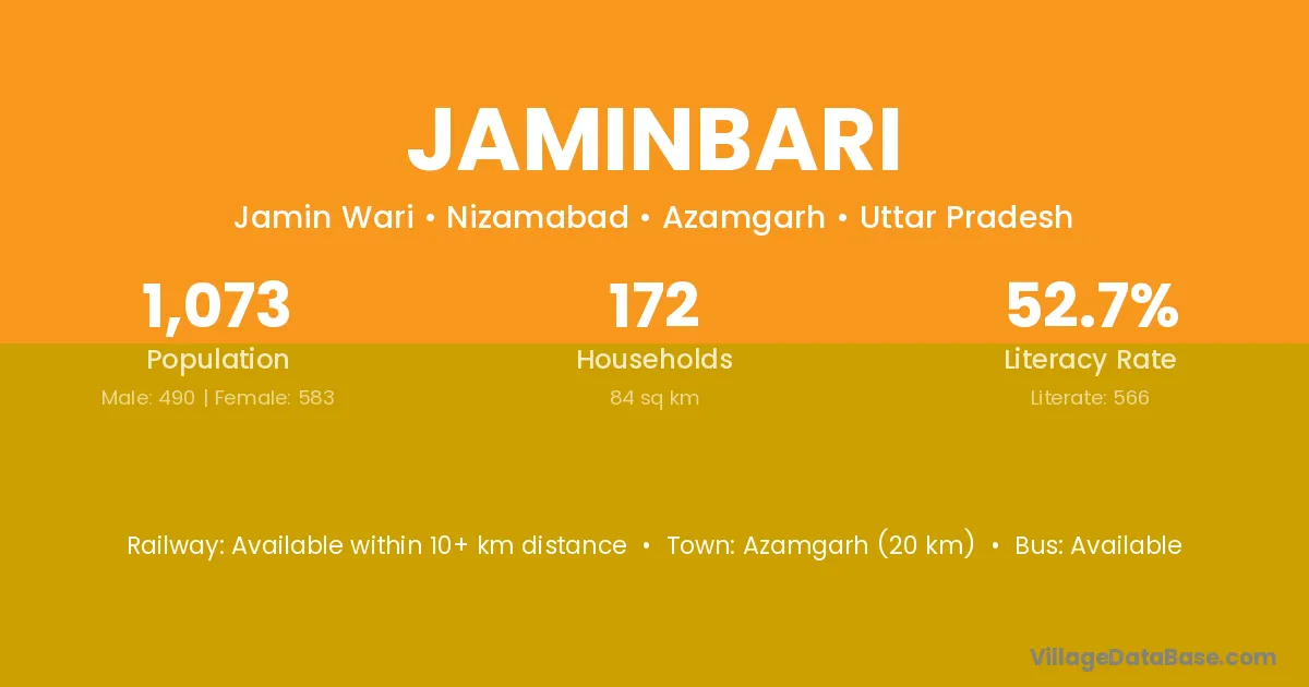 Azamgarh (20 km) is the nearest town to Jaminbari village for major economic activities and is located approximately 20 km away.
