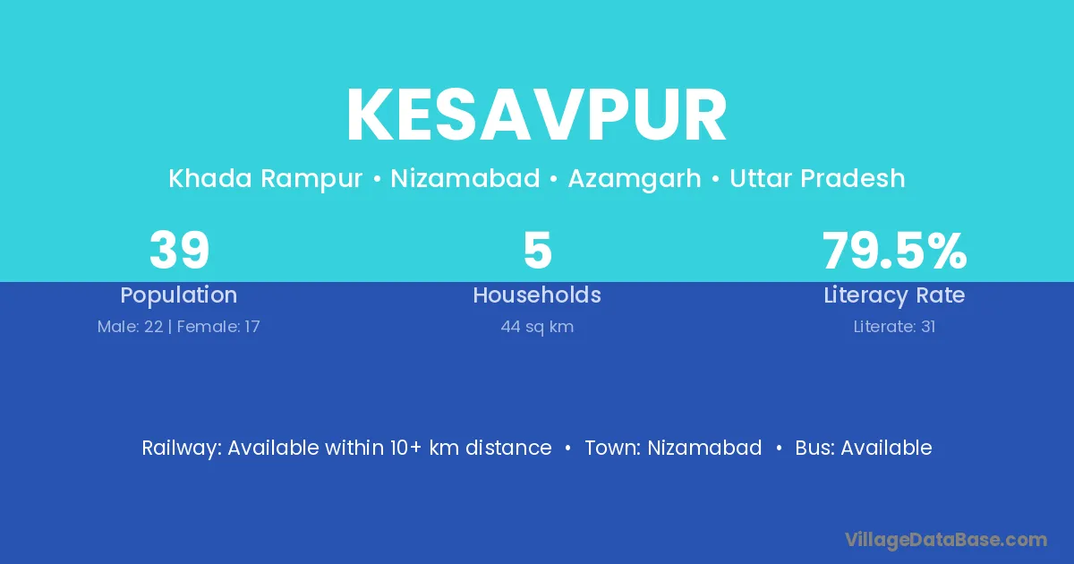 Kesavpur village has a total population of 39 people, of which 22 are males and 17 are females.