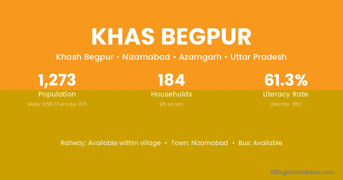 Khas Begpur village has a total population of 1,273 people, of which 658 are males and 615 are females.