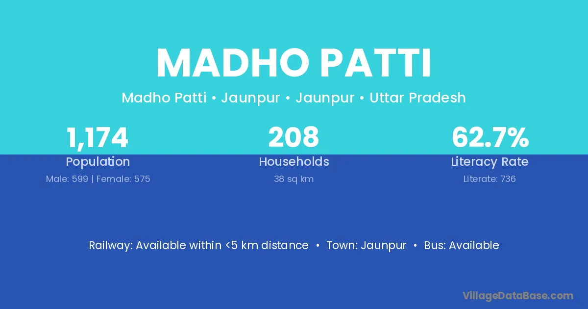 The literacy rate of Madho Patti village is 52.25%. Male literacy stands at 63.55% and female literacy at 41.74%.