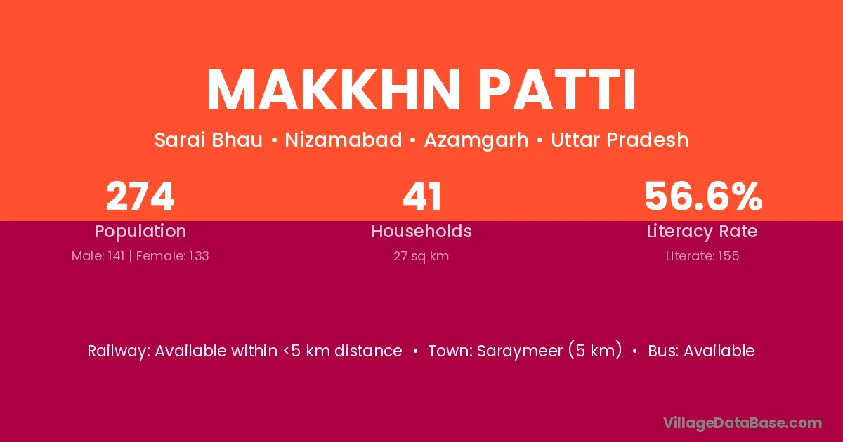 Saraymeer (5 km) is the nearest town to Makkhn Patti village for major economic activities and is located approximately 5 km away.