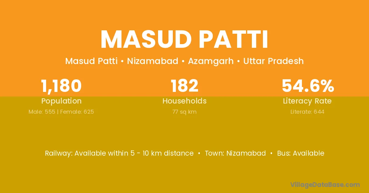 Masud Patti village is located in the Nizamabad Tehsil of the Azamgarh district in Uttar Pradesh .
