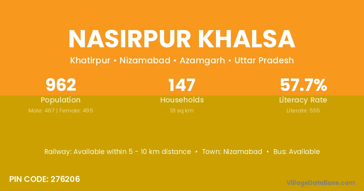 Nasirpur Khalsa village has a total population of 962 people, of which 467 are males and 495 are females.