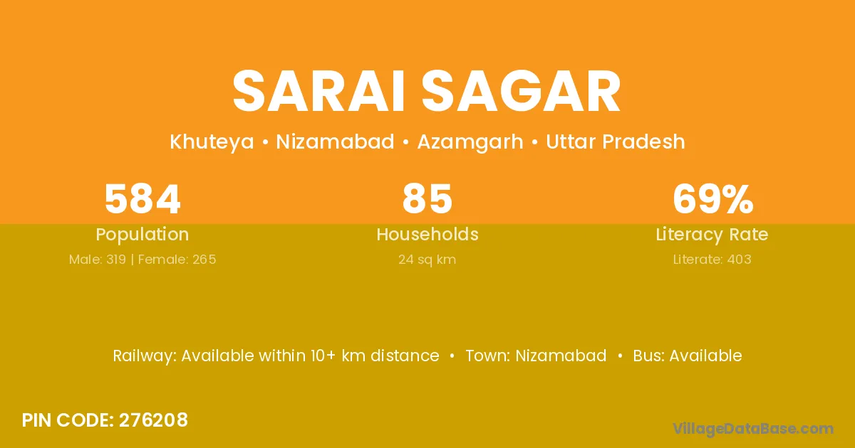Sarai Sagar village has a total population of 584 people, of which 319 are males and 265 are females.