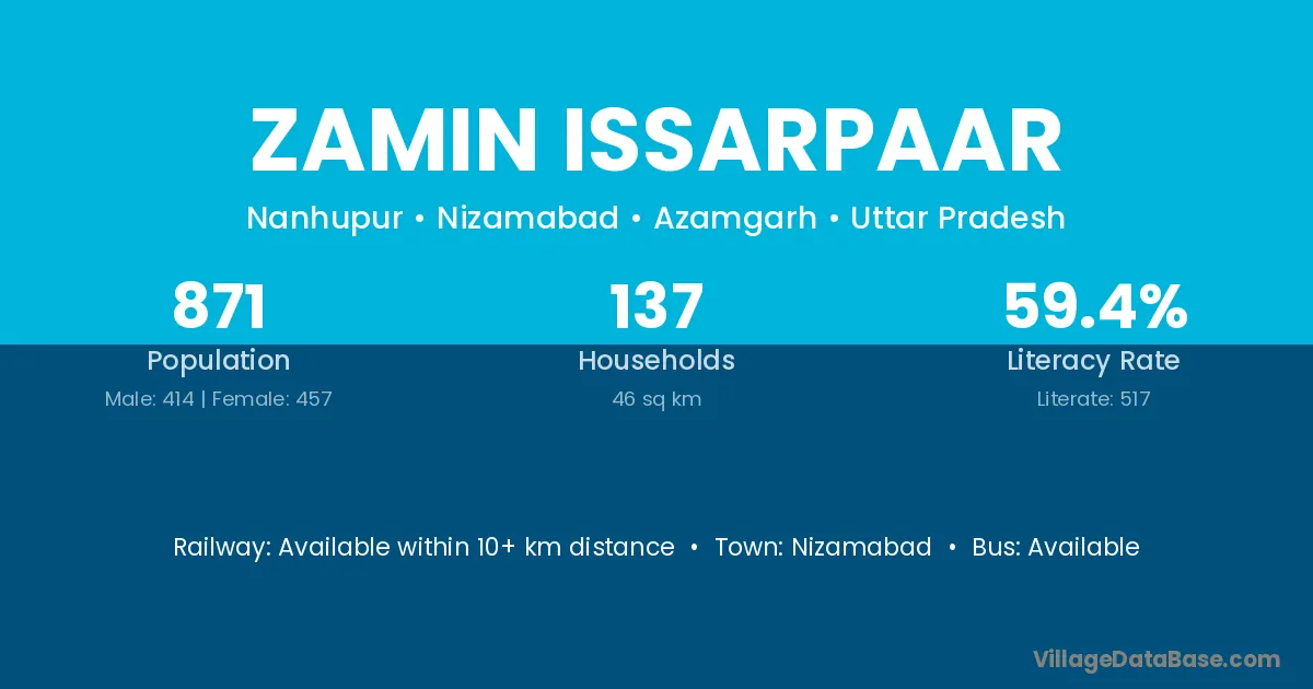 Zamin Issarpaar village has a total population of 871 people, of which 414 are males and 457 are females.