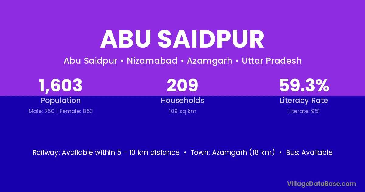 Shahganj (7 km) is the nearest town to Abu Saidpur village for major economic activities and is located approximately 7 km away.