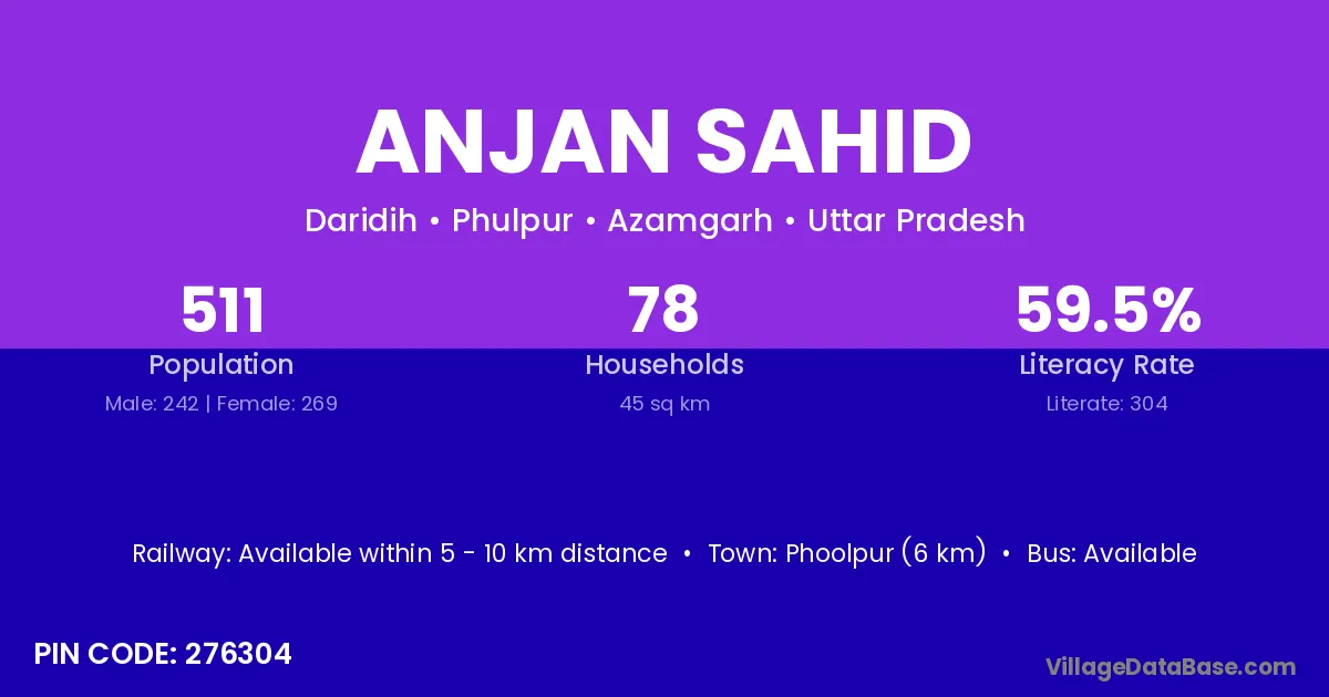 Phoolpur (6 km) is the nearest town to Anjan Sahid village for major economic activities and is located approximately 6 km away.