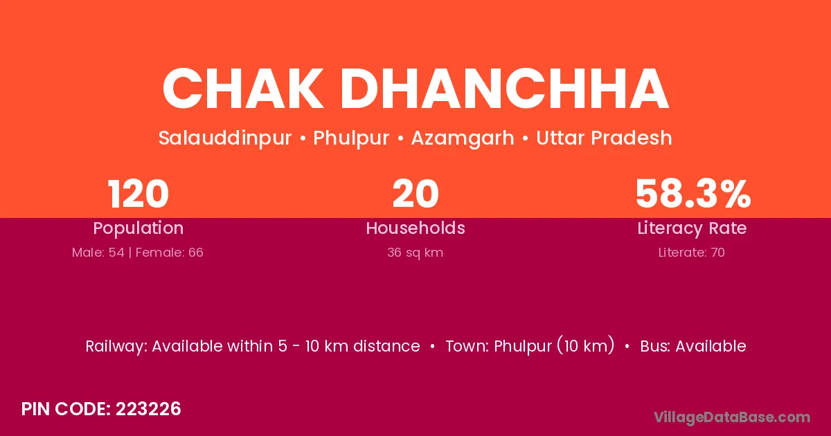 Phulpur (10 km) is the nearest town to Chak Dhanchha village for major economic activities and is located approximately 10 km away.