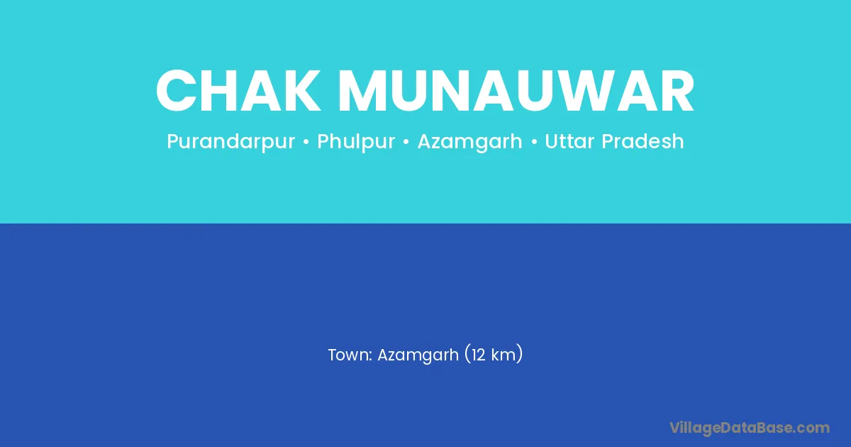 Azamgarh (12 km) is the nearest town to Chak Munauwar village for major economic activities and is located approximately 12 km away.