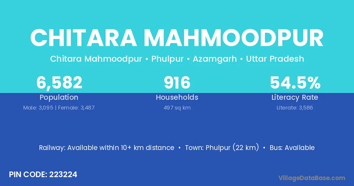 Phulpur (22 km) is the nearest town to Chitara Mahmoodpur village for major economic activities and is located approximately 22 km away.