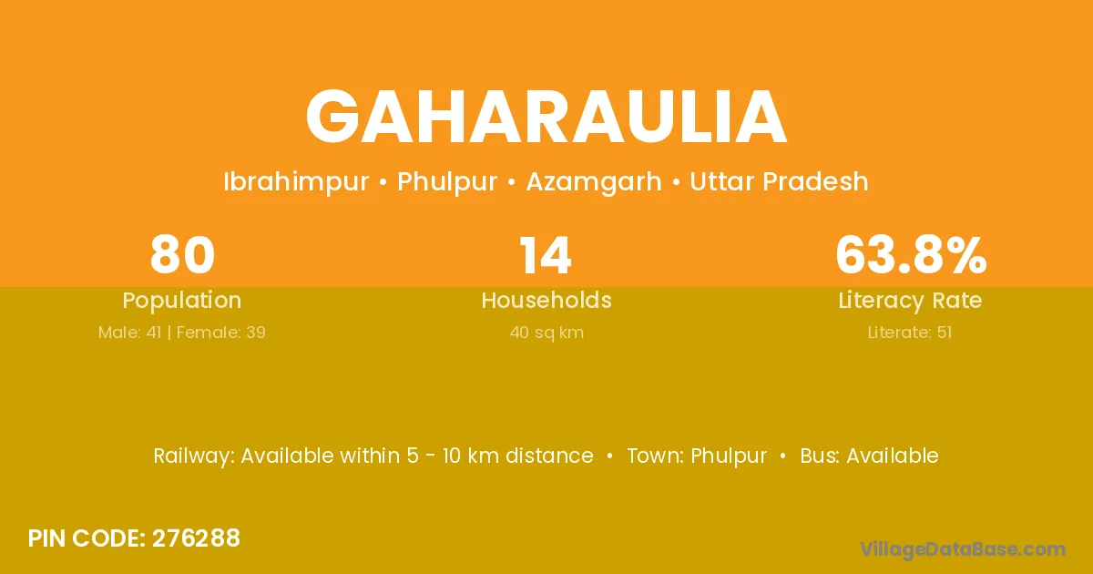 Gaharaulia village has a total population of 80 people, of which 41 are males and 39 are females.