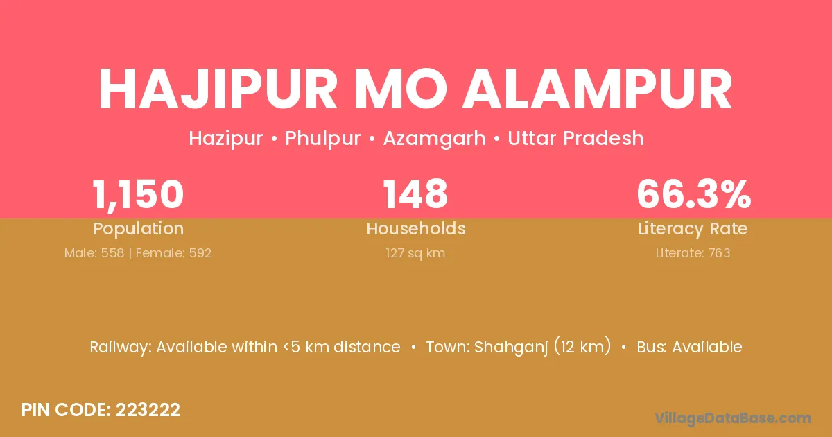 Shahganj (12 km) is the nearest town to Hajipur Mo Alampur village for major economic activities and is located approximately 12 km away.