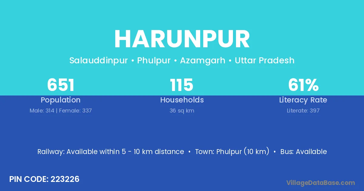Phulpur (10 km) is the nearest town to Harunpur village for major economic activities and is located approximately 10 km away.