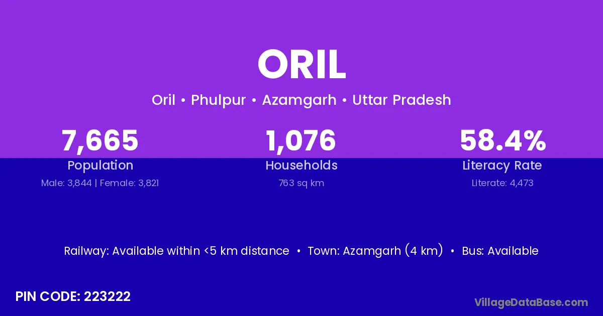 Azamgarh (4 km) is the nearest town to Oril village for major economic activities and is located approximately 4 km away.