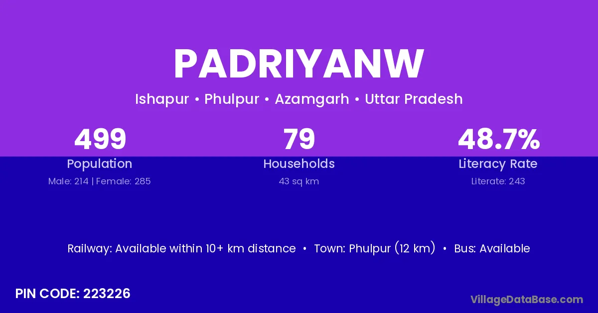 Phulpur (12 km) is the nearest town to Padriyanw village for major economic activities and is located approximately 12 km away.