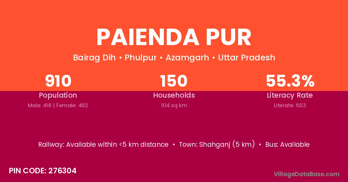 Shahganj (5 km) is the nearest town to Paienda Pur village for major economic activities and is located approximately 5 km away.