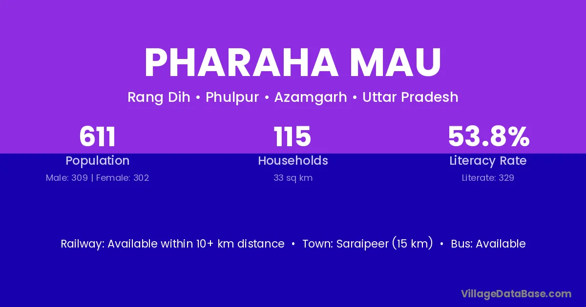 Pharaha Mau village has a total population of 611 people, of which 309 are males and 302 are females.