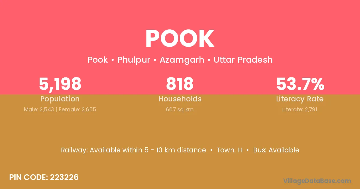 According to Census 2011 information, the village code of Pook village is 223226.
