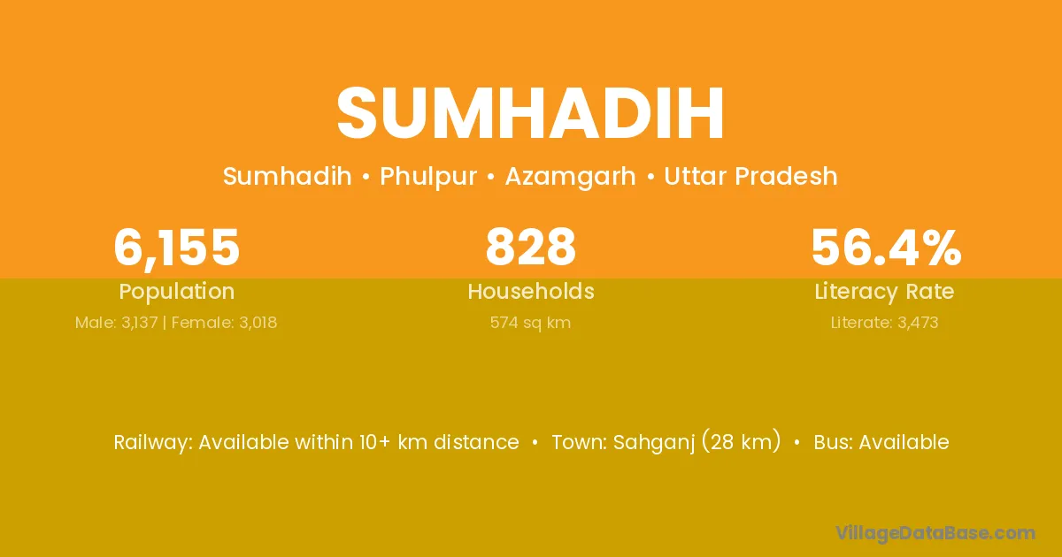 Sumhadih village has a total population of 6,155 people, of which 3,137 are males and 3,018 are females.