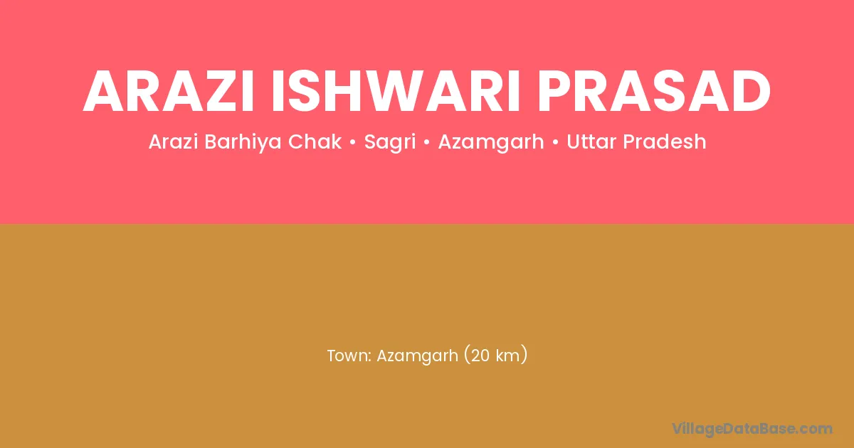 Azamgarh (20 km) is the nearest town to Arazi Ishwari Prasad village for major economic activities and is located approximately 20 km away.