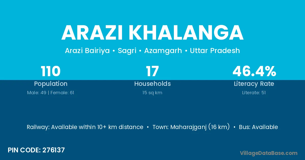 Maharajganj (16 km) is the nearest town to Arazi Khalanga village for major economic activities and is located approximately 16 km away.